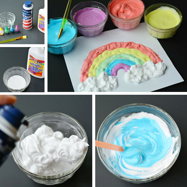 D’abord, c’est très simple à faire (ils pourront la réaliser tout seuls) mais en plus il ne vous faut que trois ingrédients de base que vous avez déjà probablement chez vous : de la mousse à raser, de la colle blanche et des colorants alimentaires. Si vous n’avez pas de colorants alimentaires, sachez que la gouache ou l’acrylique fonctionnent tout aussi bien.